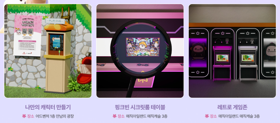 나만의 캐릭터 만들기, 핑크빈 시크릿룸 테이블, 레트로 게임존까지 사라진 핑크빈의 단서를 찾는 콘셉트로 꾸며진 체험 공간들도 운영 중입니다.